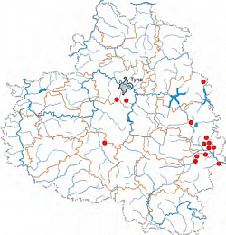 В регионе узколокальный и редкий вид, в южных районах обна- ружен лишь в XXI в. В Тульской обл. не найден во многих относительно крупных внешне благоприятных биогеоценозах лесной зоны, но проявляет повышенную заселяемость гораздо более компактных и уязвимых участков лесостепи. Стало известно не менее 17 ключевых местообитаний (7 из которых в пределах 3 систе- мообразующих урочищ) площадью от 0,1 до примерно 10 га. В большинстве из них регулярно отмечается от единичных до нескольких, в отдельных случаях до более чем 20 бабочек. Плотность имаго в ценопопуляциях обычно не превышает 3 – 5 экз./га, иногда несколько возрастает, но численность ограничивается крайне малой площадью формаций горца змеиного. В последнее десятилетие встречаемость вида в целом была примерно на том же уровне, что в 2000-е годы, но состояние некоторых ценопопуляций вызывает опасения в связи с крити- ческим сокращением формаций горца змеиного в реультате засух, а местами (особенно на балке Грязновской южнее д. Покровка, Кимовский р-н) и перевыпаса.