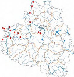Южно-таёжная, подтаёжная полоса, некоторые прилегающие лесостепные и горные реги- оны Евразии [2–9]. В Центре Европейской России распространён только в лесной зоне [1–4, 6, 7]. В Тульской обл. известен в Суворовском, Одоевском, Заокском, Алексинском, Белёвском, Щёкинском р-нах и на окраине Центрального ТО [1, 2].