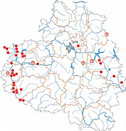На большей части территории региона (кроме районов подзоны южной лесостепи) за время исследований отмечался как узколокальный вид. В Тульской обл. известно не менее 32 ключевых местообитаний (6 из которых вхолят в 3 системообразующих урочища) площадью от нескольких до нескольких десятков га, причём многие из них могли увеличиться с 1990-х годов в результате сокращения хозяйственной деятельности [1, 2]. Ещё в 5 местах с не вполне благоприятными условиями от- мечались единичные, по-видимому, залётные особи, и ключевые местообитания не выявлены. Ценопопуля- ция, известная в Венёвском р-не (левобережье р. Полосня, 2012 г.), исчезла после нарушения пустоши, но её восстановление возможно при разлёте кобылок из соседнего малонарушаемого местообитания Московской обл. [1]. В местообитаниях постоянно наблюдается, в зависимости от площади, от нескольких десятков до сотен особей. Их плотность в ценопопуляциях исчисляется десятками экз./га, а в жаркие засушливые периоды может превышать 100 экз./га. В условиях смягчения климата в лесостепной зоне начинается постепенное рас- селение с юга и востока при весьма ограниченном выборе внешне пригодных стаций.