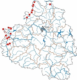 Произрастает на территории памятников природы «Алексинский бор» в Алексинском районе и «Сосновый бор на р. Восьме» в Ясногорском районе, а также на территории музея-заповедника В.Д. Поленова в Заокском районе.