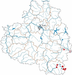 Восточноевропейско-казахстанский лесостепной вид, произрастающий в Тульской области на северной границе ареала [1]. Большинство местонахождений находится на территории Ефремовского района: у д. Кытино, д. Кобылинка, с. Сторожа, с. Хомяково, с. Мечнянка, с. Шилово и в логе Ковылий [2–5]. В XIX в. был отмечен у с. Никитское современного Куркинского района на берегу Дона [6].