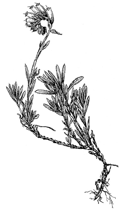Полукустарничек высотой 20—40 см. Растение сероватое от густого жесткого опушения из простых волосков и щетинок. Листья очередные, ланцетно-линейные, 3—9 см длиной. Цветки собраны в короткий простой или раздвоенный завиток. Чашечка с 5 узколинейными долями. Венчик около 17 мм длиной, желтовато-белый, трубчато-булавовидный, с 5 короткими зубцами. Цветоножки при плодах до 10 мм длиной. Плод — сухой, распадается на 4 орешковидные части.