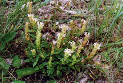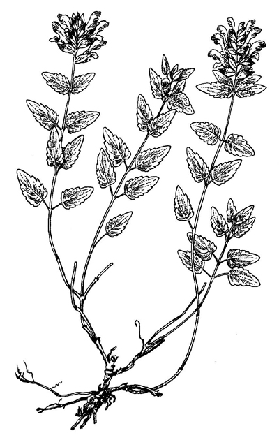 Полукустарничек высотой 20—50 см. Стебли многочисленные, приподнимающиеся, в нижней части одревесневающие, с удлиненными извилистыми ветвями фиолетового цвета; покрыты мелкими белыми волосками. Листья яйцевидные, 2—3,5 см длиной и до 2 см шириной, при основании усеченные или сердцевидные, городчато-зубчатые по краям, сверху почти голые, с нижней стороны точечно-железистые. Соцветие — четырехгранная верхушечная кисть, резко обособленная от остальной части побега. Прицветные листья широко-яйцевидные, бледно-зеленые или слегка фиолетовые. Венчик серно-желтый, с фиолетовой верхней губой и боковыми лопастями, крупный, длиной 22—35 мм. Плод сухой, дробный, распадается на 4 орешковидные части.