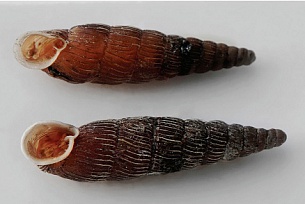 Высота раковины 13-15 мм, ширина 3,0-3,5 мм. Раковина веретеновидная, стройная, ребристая (на последнем обороте 25-40 рёбрышек), слабо просвечивающая, матовая, красновато-коричневая, составлена 10-11 оборотами.